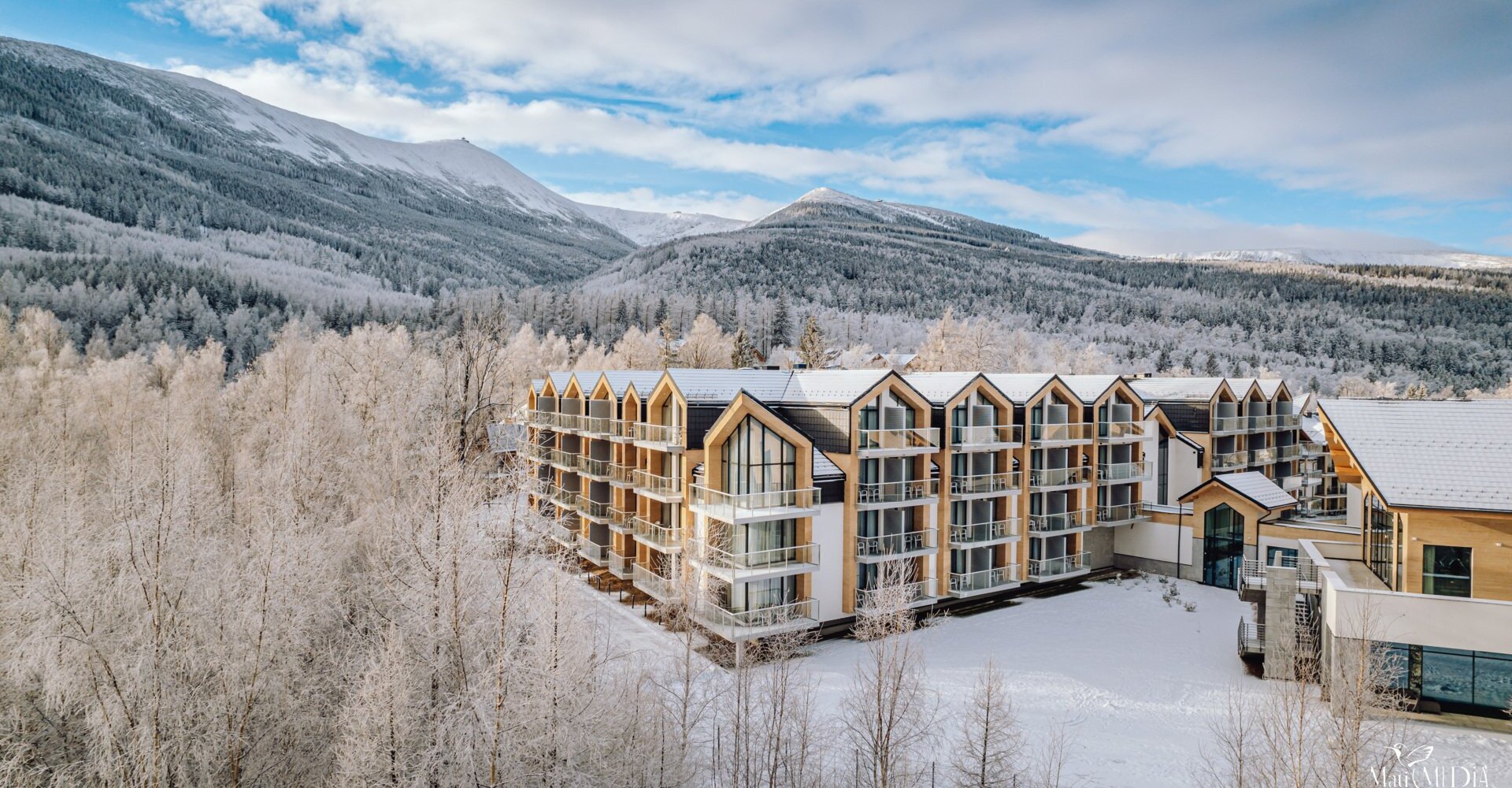 The Karkonosze Mountains are stunning at any time of the year, but in winter they take on their most beautiful glow. The Green Mountain Hotel 5* is located on the trail leading to Śnieżka. Our guests can admire the picturesque mountain landscape from the windows of the rooms and apartments.